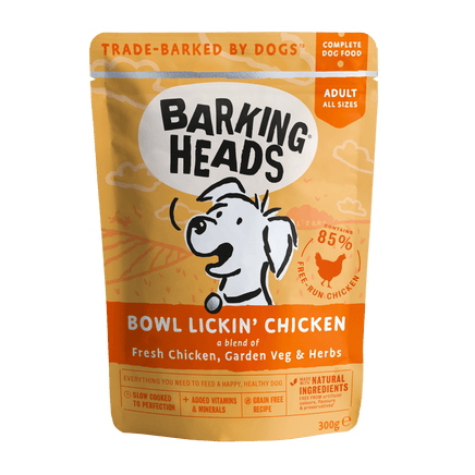 Previously Tender Loving Care, Barking Heads Bowl Lickin’ Chicken is slow cooked to paw-fection using only the best quality, natural ingredients. This scrumptious adult wet food recipe with added vitamins & minerals contains 85% free-run chicken, and what’s better yet…it’s grain-free too! Blended with a seriously yummy combination of garden veg and herbs, this chicken dinner isn’t called “bowl lickin’” for nothing!