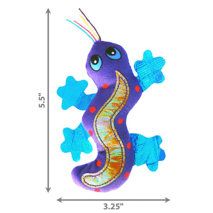 KONG Better Buzz Gecko’s lizard shape is a cat favorite, launching hunting instincts into pounce and capture play. Packed with potent KONG North American Premium Catnip, this gecko has crackling, shiny fabric and rattle to keep kitties intrigued.
