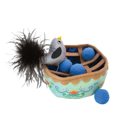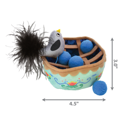 KONG Puzzlements Pie offers a feast of rewards for cats who love to dig and hunt. Packed with KONG Premium North American Catnip, the tethered blackbird’s feathery tail sparks hunting instincts. Four blueberries lure kitties to capture and bat; crackle sound keeps them playing for stimulating play worth way more than sixpence!