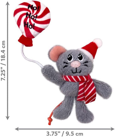 Overview KONG Holiday Cat Occasions Mouse makes celebrating the season easy, inviting kitties to play with an instinct-triggering peppermint crackle and lightweight mouse that entice batting fun. This toy features two soft targets to encourage and reward capture-and-drag play. KONG Premium North American Catnip inside extends joyful holiday play! Key Features and Benefits Festive peppermint crackles, sparking hunting instincts Roped toys sway and swish, ideal for capture-and-drag play Light weight mouse with dangly tail for batting fun KONG Premium North American Catnip inside extends holiday joy Plush holiday mouse with perfect for snuggling on cold nights