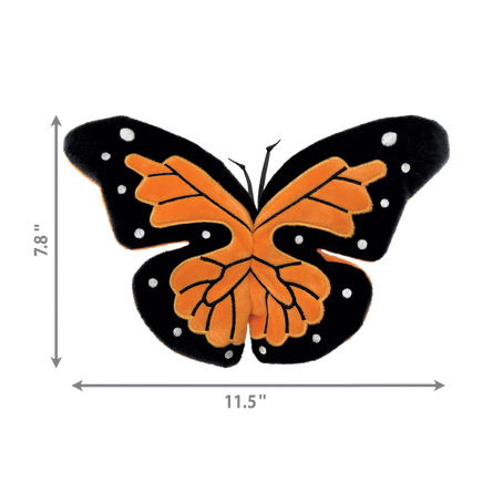 KONG Crackles Flutterz’ full body crackling sparks natural hunting instincts with a wide 12” body that encourages tons of healthy wrestling and hind paw kicking. Three-dimensional design invites cats to put paws underneath and flip for batting fun. KONG Premium North American Catnip helps play take flight.