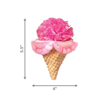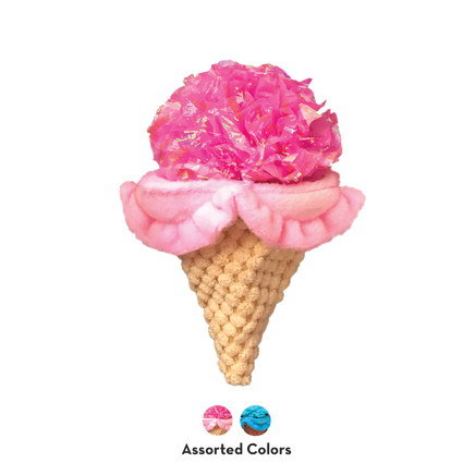 KONG Crackles Scoopz delivers a double dip of fun with crackling to unleash hunting instincts and an elastic-tethered ice cream top to tempt tugging. The plush cone is great for grabbing and the pull-apart design encourages full-body wrestling. KONG Premium North American Catnip adds kitty’s favorite flavor for long-lasting fun.