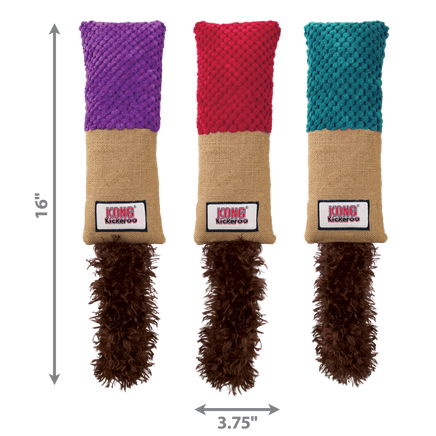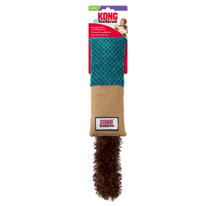 Watch your cat attack, wrestle and snuggle with their KONG Kickeroo. The unique toy appeals to a cat’s instinctive desire to stalk and capture prey. The KONG Kickeroo Cuddler’s enticing burlap fabric brings scratching adventure to a whole new level. Three different textures excite and offer fun games of bat & roll and keep cuddle time cozy with options. KONG Premium North American Catnip, a fluffy tail and stimulating crinkles will delight offering an added reward.