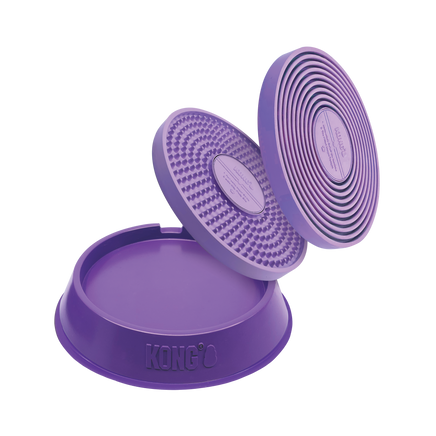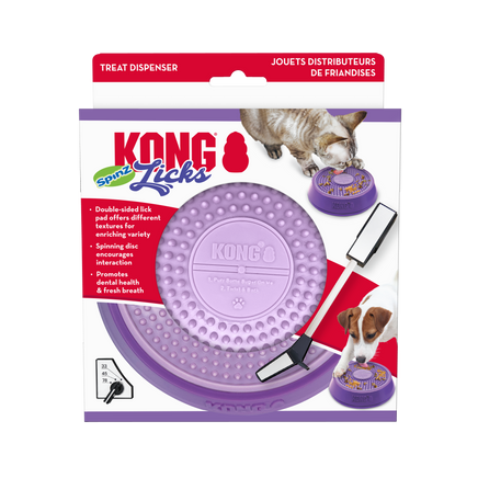 KONG Licks Spinz’ rotating, textured pad holds food or treat paste, inviting DJ K9 to lick, releasing happy hormones as he rocks out. Double-sided pad offers two textures for enriching variety (as well as multiple tracks: “I Wanna Hold Your Paw” and “Doggy Be Good”) and is removable for easy cleaning. Plus, getting down with this turntable cleans dogs’ tongues, promoting dental health and fresh breath. Non-skid base holds toy in place.