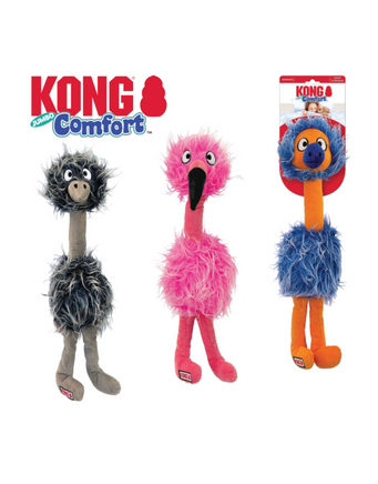 KONG Comfort Jumbo Birds Assorted Characters Dog Toys are great for flopping fun for your dog. With a squeaker in the head that will drive your dogs wild combined with a long, plush body, this toy is great for both snuggle time and indoor play time.