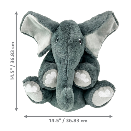 KONG Comfort Kiddos Jumbo Elephant’s ginormous size means extra-large adventures with a playful pachyderm whose squeaker can be removed for quiet play. Big, floppy ears and trunk make shaking even more fun and the soft, snuggly plush invites cuddles with a big naptime buddy between bouts of elephant-sized action.