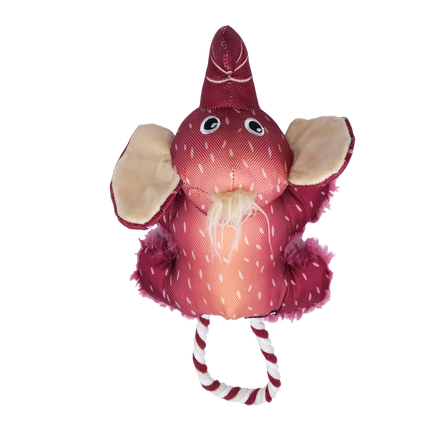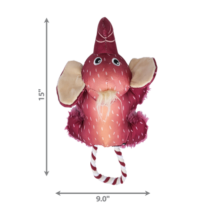 Cozie Tuggz Elephant’s rope handle is made from sturdy cotton rope knotted inside his body for instinct-satisfying tugging action. He squeaks and crinkles to keep the fun going for lots of healthy interactive play. This pint-sized pachyderm’s soft plush invites soothing snuggles between bouts of tug-of-war.
