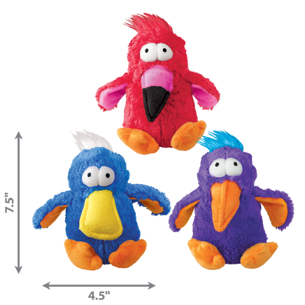 Check out these cute DODOs! Brightly colored and full of fun, KONG DODO Birds will make dog owners smile and tails wag. DODO Birds are soft and cuddly but also reinforced internally for toughness. You won’t find any little squeaker in these birds–they contain two squeaker balls to allow for lots of squeaking fun.