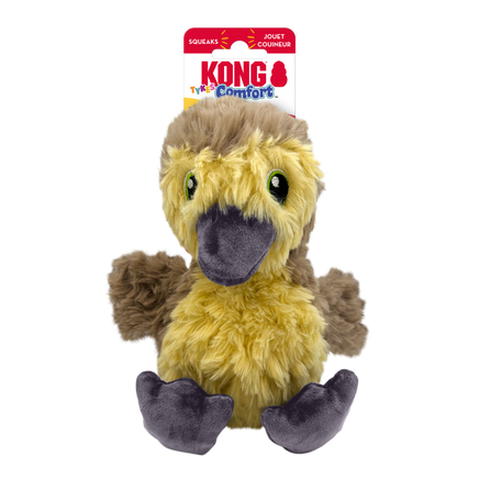KONG Comfort Tykes are versatile playtime & snuggle-time toys, featuring baby farm animal characters. With a removable, low-pitched grunting style squeaker to adapt to your dog’s needs, they’ll have several types of play in one cuddly and fluffy toy.
