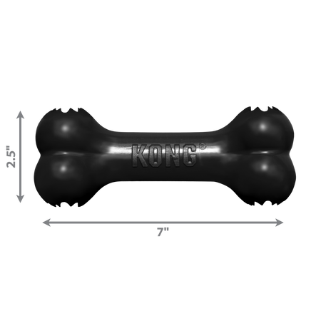 The KONG Extreme Goodie Bone™ toy delights dogs that are the toughest of chewers and that delight in chew sessions. Made from the most durable KONG Extreme unique, natural black rubber formula this bone is designed for determined chewers. The KONG Extreme Goodie Bone™ also features patented Goodie Grippers ™ that turn this entertaining toy into a fun treat dispensing challenge that can be stuffed with your dog’s favorite kibble. Want to extend the chew session? Stuff with KONG Snacks™ and entice with a bit of KONG Easy Treat™.