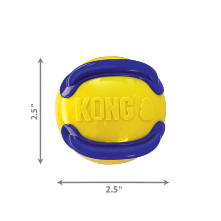 KONG Jaxx’s™Brights Ball is built to last with durable materials designed to reward appropriate fetching and chewing behavior. Raised ridges provide an unpredictable bounce and provide an easy grip making it ideal for interactive play. A squeaker extends the engagement by keeping dogs playing.