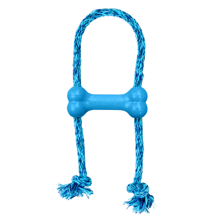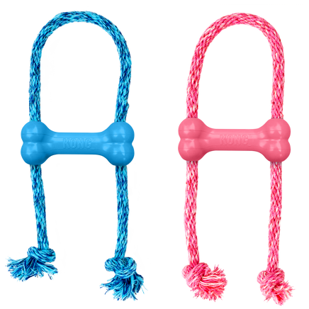 - Durable KONG Puppy Rubber Bone with cotton rope for beginning chewers