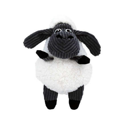 The KONG Sherps Floofs Sheep has an uber plush exterior that is irresistibly snuggly for cuddling between gentle games of indoor fetch. The unique flat squeaker in the body provides full on fun with sounds all around. Crackly ears extend and delight dogs making playtime last longer. Lined for long-lasting fun, dogs of all sizes can easily grab on and play with these adorable adventure buddies.