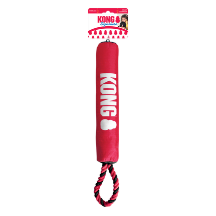 KONG Signature Stick’s rugged exterior delivers long-lasting tugging and fetching fun to satisfy dogs’ instinctual needs. A symphony of squeaking, crinkling and honking keeps pups playing longer while the soft stuffed body is gentle on teeth and gums. Cotton rope makes grabbing easy and helps clean teeth as dogs chew.