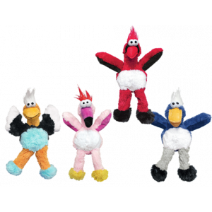 KONG Wild Knots are soft and cuddly on the outside while durable and strong. The Wild Knots Bird is sure to be a hit with dogs and their pet parents! The internal knotted rope satisfies dogs’ natural instincts and the reinforced plush body provides extra durability. KONG Wild Knots have a minimal amount of stuffing for minimal mess. As if that wasn’t enough, they squeak! They’re KNOT just average plush.