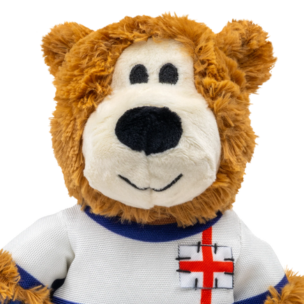 Themed Apparel: These bears wear football kits representing different countries.