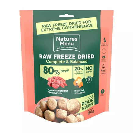 Treat your best friend to a complete, quality, beef dog food . Our Freeze Dried meals are made in Norfolk with the same high-quality and care that goes into our raw food range. Ingredients you can see, understand and trust. Our Freeze Dried beef dog food contains 80% beef and a nutritious blend of fruit, vegetables and superfoods , so you can feed your dog a meal to bark about!