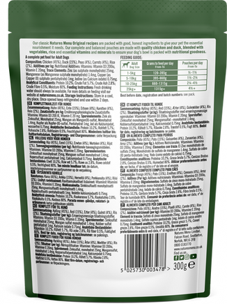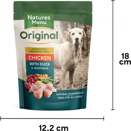 A natural, complete and balanced meal for adult dogs. Made with tender chicken and succulent duck with a generous portion of wholesome vegetables, brown rice, and added vitamins and minerals.Suitable for adult dogs and puppies over 20 weeks.