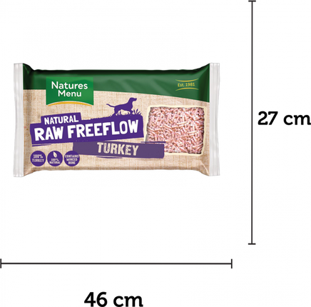 Our Raw Turkey Freeflow Mince is an ingredient, not a complete meal. Add it to other ingredients to make balanced and nutritious raw meals at home.