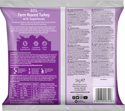 Superfoods aren’t just for humans! These complete and balanced, raw single protein nuggets are packed with 80% farm-reared turkey as well as specially selected fruits and vegetables. Grain free. Chicken free. Pack size 1kg.
