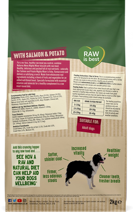 Our Salmon & Potato Mighty Mixer is fishy, flavoursome and delivers a satisfying crunch. Made from wholesome real ingredients including a blend of fruit and vegetables for an added nutritional boost.