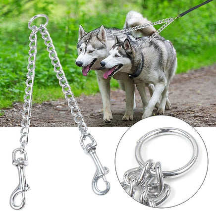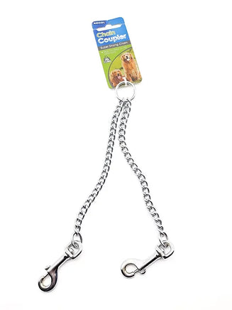 The Ancol Chain Coupler is a strong and reliable tool for walking multiple dogs. The heavy chain is chrome plated for strength and beauty and the coupler has a large O-ring so it may easily be affixed to a lead. Couplers are a must-have for pet owners with two dogs. While walking two dogs used to mean leads, dogs, and owners got tangled, a coupler means just one lead is needed and the dogs are kept together.