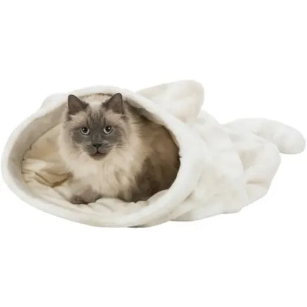 Nelli cosy bag. Dimensions: 34 x 23 x 55 cm. Colour: white/taupe. Made of plush/short plush hair. Polyester cover. Polyester fibre filling. Stable shape thanks to reinforced edges.