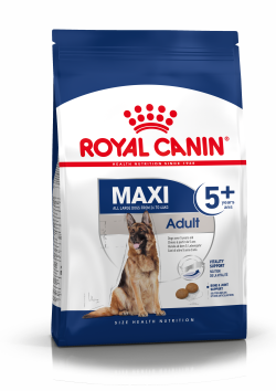 Ageing in dogs can vary, but when your large dog reaches the approximate age of 5, the first signs of aging may begin to show. That’s why it’s important to remember that at every stage of your dog’s life, a balanced diet is important to support its good health. ROYAL CANIN® Maxi Adult 5+ dog food is formulated with the nutritional needs of your middle-aged dog in mind and is suitable for large dogs aged 5 and over, with an adult weight ranging between 26kg-44kg. Middle-aged large dogs can be sensitive to weight gain at this stage, making it even more important to monitor your dog’s daily intake allowance and help prevent overeating. ROYAL CANIN® Maxi Adult 5+ contains a unique and balanced blend of very high-quality protein and dietary fibre, meaning each serving gives your dog what it needs to maintain a healthy weight and support optimal digestion. ROYAL CANIN® Maxi Adult 5+ is specifically formulated to help support large breed dogs during this stage of life by supporting its bones, ligaments and joints – meaning your dog can comfortably support its weight and maintain and active lifestyle. Although your dog may now be showing the first signs of aging, it will still have plenty of energy left. That’s why ROYAL CANIN® Maxi Adult 5+ contains an adapted content of nutrients, including an exclusive complex of antioxidants to help neutralise free radicals and help your dog maintain vitality and a healthy metabolism.