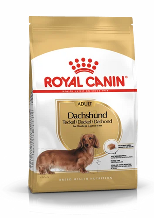 The Dachshund is a friendly, intelligent and loyal breed that is widely renowned as the ideal family dog. Because each breed has different needs, it's important to select a food product that contains nutrients to support optimal health. Suitable for Dachshunds over 10 months old, ROYAL CANIN® Dachshund Adult is specially formulated with all the nutritional needs of your adult dog in mind to help maintain its good health and wellbeing. These low-lying dogs have long bodies that remain highly compact and muscular. They typically carry their heads very boldly, usually with an expression of alertness. Despite their short legs, Dachshunds are very active and agile. That's why adult Dachshunds need a diet that provides the nutrients required to meet their energy needs, in order to help maintain healthy levels of activity. ROYAL CANIN® Dachshund Adult contributes to supporting the Dachshund's bones and joints, thanks to an adapted calcium and phosphorus content. This exclusive formula also helps your dog maintain good muscle tone and an ideal weight. ROYAL CANIN® Dachshund Adult also helps to reduce the smell and volume of your dog's faecal matter. The unique kibble in ROYAL CANIN® Dachshund Adult is tailor-made to help reduce tartar formation, thanks to the inclusion of calcium chelators. To cater to each dog's individual preferences, ROYAL CANIN® Dachshund Adult is also available as wet food in a soft and tasty loaf. If you're considering mixed feeding, simply follow our feeding guidelines to ensure your dog gets an accurate amount of both wet and dry food for optimal benefit. At ROYAL CANIN® we're committed to providing nutritional solutions to your pet's needs. All of our products undergo an extensive quality control process in order to guarantee the optimum quality of food as well as catering to your dog's specific dietary requirements and lifestyle. This means that when your dog eats ROYAL CANIN® Dachshund Adult, it's getting a complete and balanced diet.