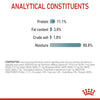 ANALYTICAL CONSTITUENTS: Protein: 11.1%, Fat content: 3.0%, Crude ash: 1.8%, Crude Fibres: 0.5%, Moisture: 80.8%.
