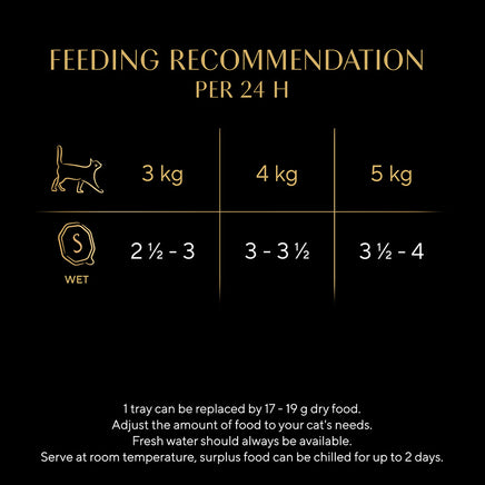 Adjust the amount of food to your cat's needs. Fresh water should always be available. Serve at room temperature, surplus food can be chilled for up to 2 days.