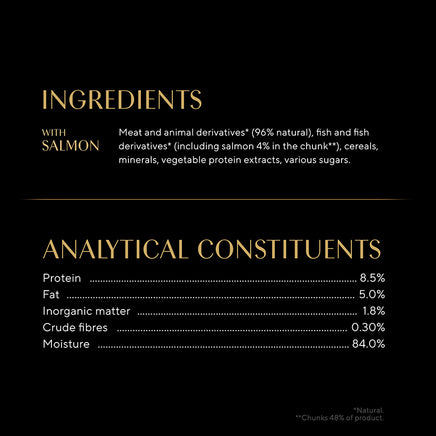 - Cat food with Salmon served in a convenient tray - easy to open and serve