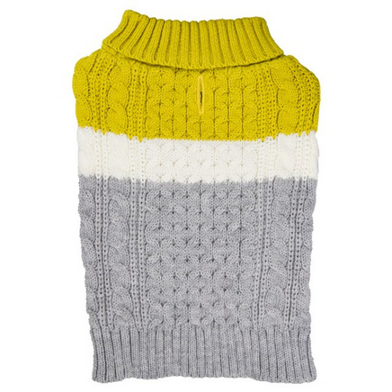 We've got a soft spot for this gorgeous cable knit sweater in eye catching colours Mustard Yellow, White Grey. Made with a high quality, luxurious material, this lovely knit will keep your four legged friend cosy and is perfect for the chilly winter months and getting cosy on the sofa with a biscuit or two!