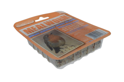 Suet To Go Mealworm Suet Block made using high quality beef suet, millet seed, peanut and dried mealworm, which will attract a wide range of wild birds to your garden, including robins, finches, blue tits, great tits, long tailed tits, blackbirds, jays and many more. Perfect for all year round feeding.