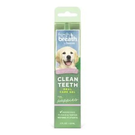 Oral care is about more than making your pets’ smiles sparkle—it’s an important component of their overall health. In fact, 80% of dogs begin to show signs of oral disease by age 3. Our Fresh Breath Clean Teeth Oral Care Gel Puppy has a unique blend of powerful, natural ingredients that removes and defends against plaque and tartar, providing fresh breath in fun flavors that dogs love! Clean teeth, fresh breath, no brushing!