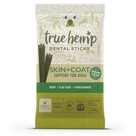 Nothing says ‘True Hemp™ SKIN+COAT’ like soft skin and a shiny coat! This formulation contains a blend of ingredients in a dental-stick format to help keep teeth clean and also provide Omega 3 essential fatty acids, which play a critical role in normal skin function and appearance.