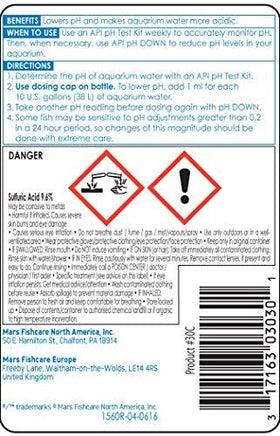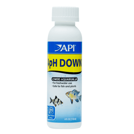 API pH DOWN lowers pH to make freshwater aquariums more acidic for fish and plants when levels rise too high. pH is the measure of acidic or alkaline conditions in water, where a value of 7.0 corresponds to a neutral pH, pH values about 7.0 are considered alkaline, and pH values below 7.0 are considered acidic.