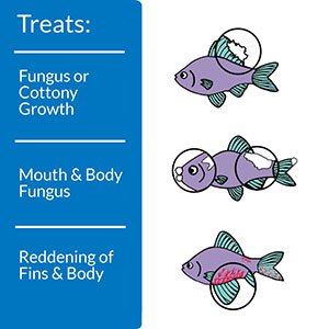 API Pimafix Antifungal Freshwater and Saltwater Fish Remedy treats fungal and bacterial infections in all fish, including even the most delicate fish species such as tetras, discus fry, and scaleless fish like clown loaches.