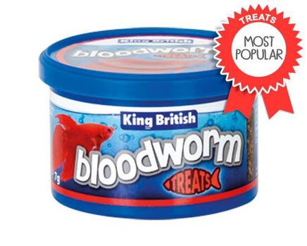King British Bloodworm Treats are suitable for all aquarium fish, turtles & terrapins. Bloodworms are insect larvae, freeze dried immediately after harvest to retain flavour & nutritional value. Their name comes from their natural red colour, and they are the type of food that freshwater fish would choose to eat in the wild. They are rich in iron and protein, and promote excellent colour & condition. A welcome addition to any diet.
