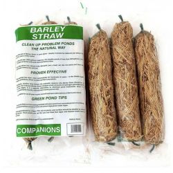 This is a great natural and environmentally friendly way to kill of the algae and is a popular alternative to chemical pond treatments. A year-round protection that will not harm plants or fish. Float the stick in the pond, ideally placed near the water outlet and tethered just below the surface. When the straw has almost fully decayed, place in a fresh stick then remove the old one two weeks later. The small amount of hydrogen peroxide is released as the straw rots. Although the straw can be applied any time of year, it is best to add the nets of straw to your pond early in the spring, prior to any algae being visible. It can take 6-8 weeks to notice any results from the straw, however once the straw begins to decompose, it will remain active until it has almost completely decomposed.