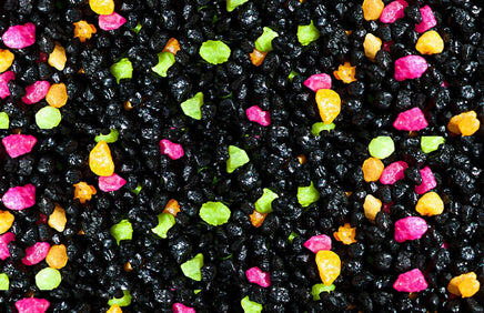 4.4lb High quality gravel, Substrate Suitable for all types of Aquariums, Perfect planting Medium, Will not alter PH levels, Fish Safe, Non-Toxic, Shiny Black with neon pink & yellow bursts mixed in Colored Gravel. Looks great with black lights. This fish tank gravel not only enriches the natural splendor of your salt or fresh water fish, but also encourages a healthy aquatic ecosystem. Gravel helps hold plants and ornaments in place. Helps beneficial bacteria colonize. Great for adding character, color and a personal touch to your project.