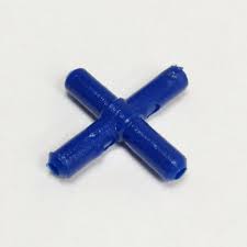 A plastic cross shaped fitting for use in conjunction with clear 4mm internal diameter plastic airline tubing. It allows airline to be divided to service various aquarium accessories from outlet of aquarium pump.