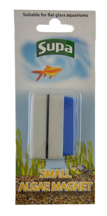 Supa Algae Magnet Small allows you to clean the glass inside your aquarium without the need to get wet. A strong magnet on the outside holds the inside cleaning pad in position. The abrasive material on the inside magnet cleans the tank while the outside magnet which has a soft felt pad polishes the glass.
