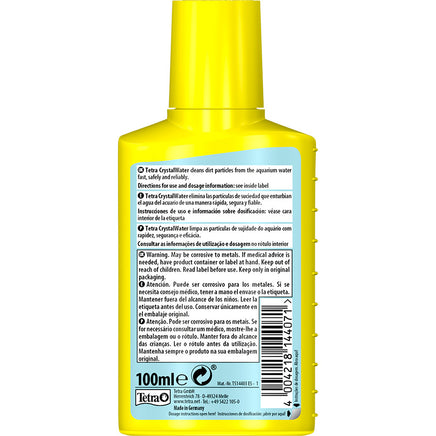 Tetra CrystalWater quickly, safely and reliably eliminates clouding from aquarium water caused by dirt particles. Carefully selected minerals gently eliminate all kinds of clouding. The active ingredients bind small particles in the water, which can then be extracted by the aquarium filter. The results can be seen within two to three hours with water becoming crystal clear within six to twelve hours.