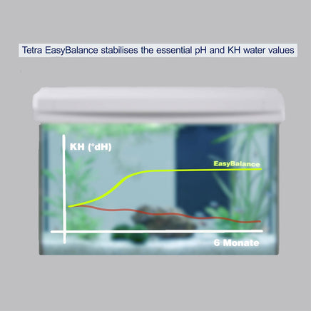Tetra EasyBalance stabilises essential pH and KH water values, and sustainably reduces harmful substances such as phosphate and nitrate. This may lower the number of water changes required and extend the period until the next (partial) water change by up to six months. In this case, monthly partial water changes are no longer necessary, which also reduces water consumption. Furthermore, Tetra EasyBalance enriches aquarium water with essential vitamins, trace elements and minerals for fish and plants. This keeps the ecosystem in the aquarium healthy and well balanced.