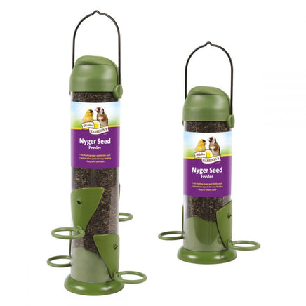 Great value, durable plastic feeders with a unique flip top design. Perfect for feeding nyger and thistle seed. Special micro ports for easy feeding. Easy to fill and clean.