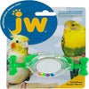 The JW Activitoy Rattle Mirror is a popular bird toy designed for small birds like parakeets, cockatiels, canaries, and budgies. It's a colorful, spinning toy with a round mirror in the center and textured wheels at each end. Small plastic beads are sealed into the mirror's edge and roll and rattle when the bird plays with it.
