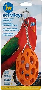 The Nutcase Activitoy is a stretchy all natural rubber football shaped toy that hangs from a chain inside the cage. This soft flexible rubber is tough and can be stretched and filled with your birds favorite nuts or treats. The small cut outs in the rubber allow your bird to hold it and to manipulate the toy to remove the treats inside. This toy is both intellectually and physically challenging to your bird. Great for parrots of all sizes.