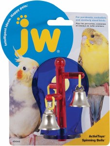 JW® Spinning Bells will provide hours of fun and entertainment for your pet bird. Birds are fascinated with the motion; shiny surfaces and jingling sounds as the bells spin. The parakeet; along with cockatiels and other small parrots requires stimulation and exercise for their well-being. This bird toy is designed to stimulate your pet bird's mind as well as its motor skills for a healthy life.