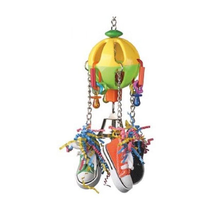 There are three sneakers each filled with coloured crinkle paper which your Parrot can have fun removing piece by piece, then shredding into even more pieces.